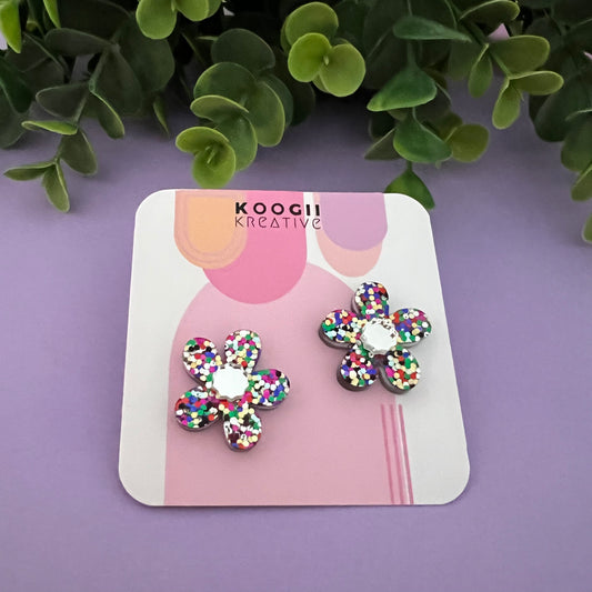 'Blanca' Stud (Red Mirror/ Pink Marble)